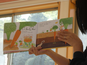 栄養士さんから 食べることの大切さについての お話を聞きしました。 わたしたちの体は 「たべもの」でできています。 食べ物にはチームがあって 3つのチームに分かれています。 赤チームには、 魚、肉、豆、牛乳など 丈夫な体…