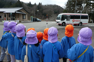 「どんなバスが来るかな」 「どっちからくるんだろう…」 「こっちからだでー」 ぶどう組とみかん組で イナカーに乗って図書館へ 行きました (イナカーさんは 園児が乗るのでなんと大きいバスを 手配して下さいました ありがと…