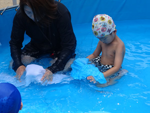 プールでは顔をつけたり