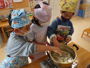 はじめは、じゃこだし作り。