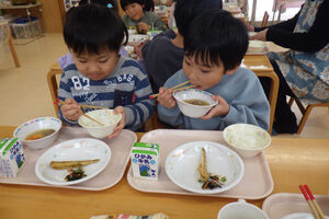 みかん組さんにもお味噌汁の