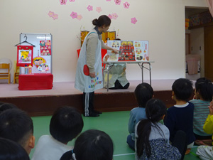 大型絵本で七段飾りのおひな様も