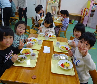 美味しそうに幸せそうに食べるこども達