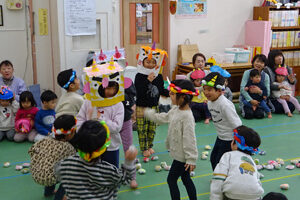 コウノトリの巣塔がある保育園